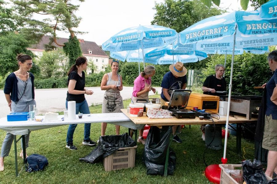Nicht lange dauerte es, bis die ersten Schülerinnen und Schüler Hunger und Durst verspürten und sich an den Labstellen des Elternvereins stärken konnten. Wie jedes Jahr war wieder die frisch gegrillte Bosna der heimliche Star des Festes. Am Ende des Tages hatten knapp 900 Paar Würstl ihre Abnehmer gefunden.