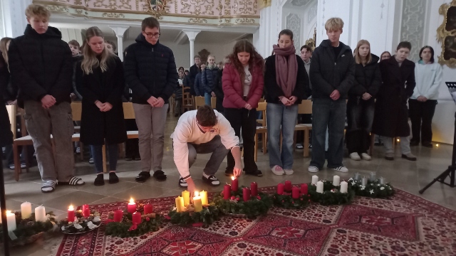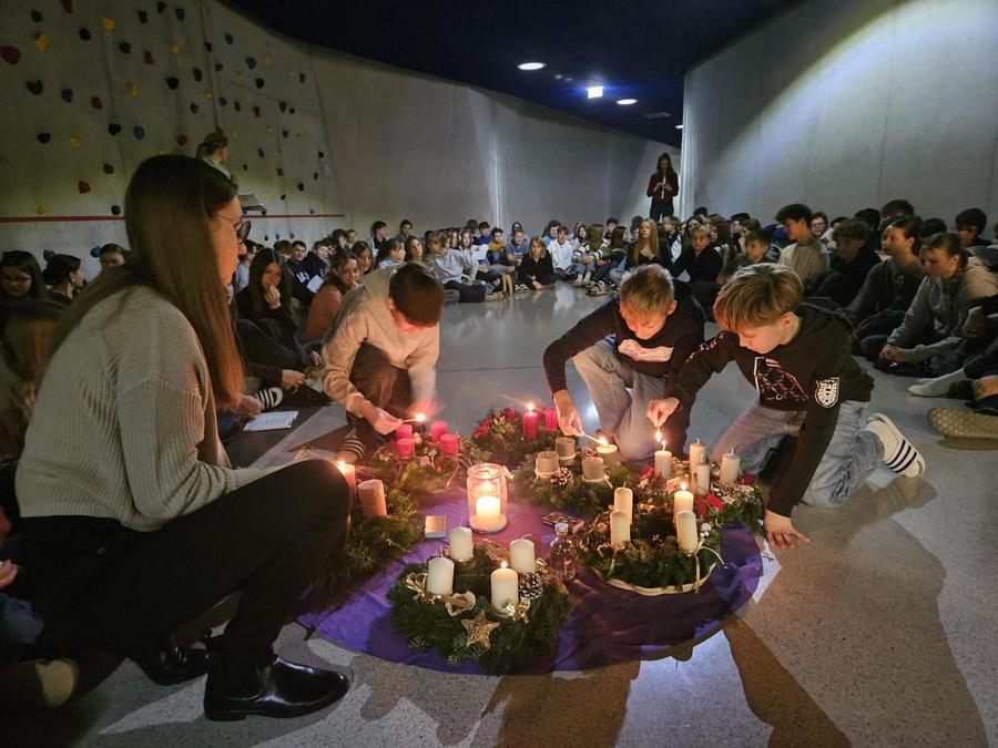 Am Montag, den 1. Dezember 2025 versammelte sich unsere Schulgemeinschaft an drei Orten des Stiftsgymnasiums – in der Aula, im Verbindungsgang beim Turnsaal sowie in der Akademischen Kapelle, um mit der traditionellen Adventkranzsegnung in die Adventzeit zu starten.