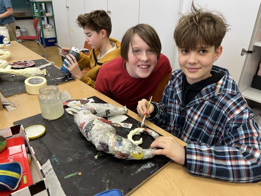 Jakob und Jonas (beide 4D) mit ihrem Hai