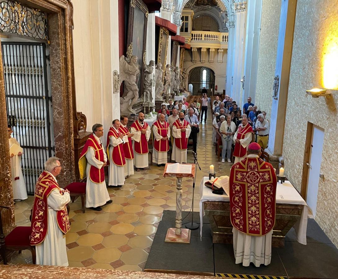 Über 50 Gläubige aus Tivoli und Palestrina östlich von Rom hatten sich mit ihrem Bischof Mauro Parmeggiani im Rahmen einer Diözesanwallfahrt auf den weiten Weg nach Kremsmünster gemacht, um ihren Patron und Landsmann Agapitus (+274) anlässlich des 1750-Jahr-Jubiläums seines Martyriums zu besuchen. Dieses besonderen Ereignisses gedenkt die Diözese Palestrina übrigens mit einem eigenen Festjahr und zahlreichen Veranstaltungen, zu denen auch die Reise nach Österreich zählt.