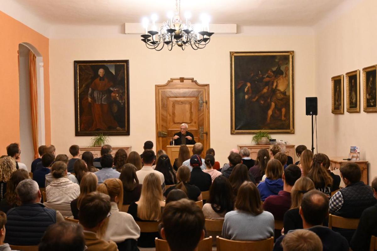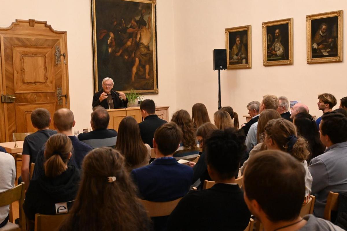 Der Wintersaal war dicht gefüllt, als Dr. Wolfgang Schüssel am 8. November beim Treffpunkt Benedikt sprach. Etwa 80 junge Leute waren gekommen, um den ehemaligen Bundeskanzler zu den christlichen Wurzeln Europas und aktuellen Herausforderungen für Kirche und Politik zu hören - Themen, die offensichtlich nicht nur ältere Menschen hierzulande umtreiben. Die Anwesenden konnten einen nachdenklichen, aber sehr hoffnungsfrohen Dr. Schüssel erleben, der sich mit seinen 80 Jahren als überzeugten „Possibilisten“ bezeichnet; bei Problemen Lösungen möglich zu machen, darum sei es ihm stets gegangen.