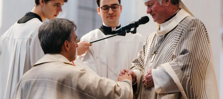 Am Ende stand ein starkes Zeichen: Fünf Menschen legten dem neugeweihten Abt die Hände auf, um ihn und sein Wirken zu segnen. Darauf folgten der allgemeine Schlusssegen des Bischofs, das „Großer Gott, wir loben Dich“ und der Auszug, zu dem die berühmte Toccata in F-Dur von Widor erklang. Alle Mitfeiernden waren anschließend zur Agape in den Kaisersaal geladen.
