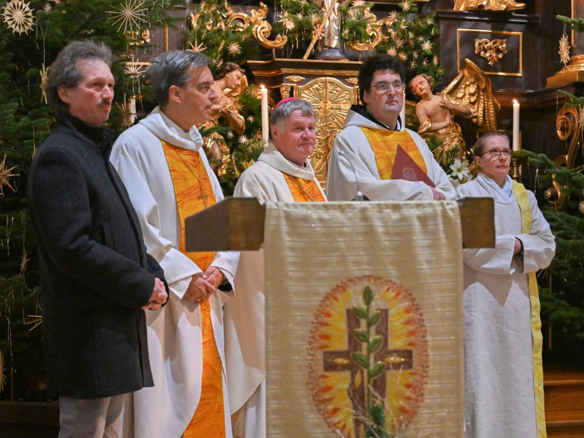 Am 10. Jänner wurde der Pfarrvorstand feierlich in das Amt eingeführt. Den Festgottesdienst zur Amtseinführung von Pfarrer und Pfarrvorständ:innen feierte Bischof Manfred Scheuer gemeinsam mit Priestern, und weiteren Seelsorger:innen aus den Pfarrteilgemeinden sowie Abt Bernhard Eckerstorfer. Gekommen waren Vertreter:innen aller 11 Pfarrteilgemeinden und der pastoralen Orte, die den Gottesdienst aktiv mitgestalteten, sowie zahlreiche Pfarrmitglieder der neuen Pfarre Almtal. Musikalisch gestaltet wurde der Gottesdienst vom Benediktus-Chor und einem Instrumentalensemble.