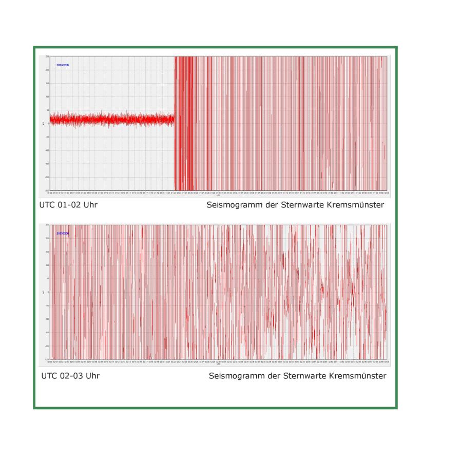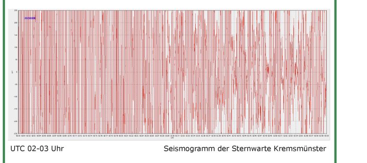 Seismographische Aufzeichnungen der Sternwarte. Am 6. Februar 2023 ereignete sich nachts um 02:17 Uhr MEZ im Raum Gaziantep in der Türkei ein Erdbeben der Magnitude 7.8.