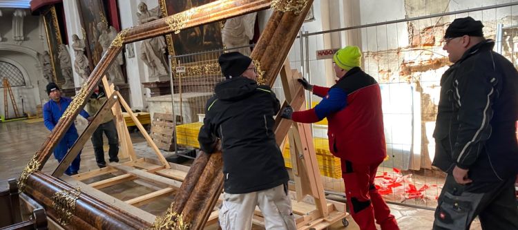 Bereits vor Osten sind folgende Arbeiten geschehen: Der große Bilderrahmen des bereits abgetragenen Abendmahlaltars wurde in der Stiftskirche gereinigt und kam mit einem eigens dafür angefertigten Transportwagen in ein Depot. Ebenso wurden die Beichtstühle, das Gästegestühl und diverse Kleinteile noch vor Ostern abmontiert.