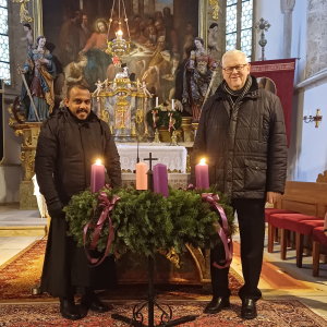 Viele werden sich noch an P. Sheen erinnern, der von 2018 bis 2022 bei uns im Kloster mitgelebt und in den Pfarren ausgeholfen hat. Er kam durch den Kontakt von Abt Oddo mit Abt John, der mit zwei anderen Mitbrüdern in den 1980er Jahren das Kloster St. Thomas in Kerala, Indien, gegründet hat, zu uns. Letztes Jahr wurde Abt Clement zum zweiten Abt des Klosters St. Thomas gewählt. Auch er zeigte auf unsere Anfrage hin Interesse, zwei Mitbrüder für uns freizugeben. So kamen Father Jinto und Father Jose Mitte November zu uns. Sie haben vor rund zehn Jahren die Ewige Profess abgelegt und waren sowohl im Kloster als auch in der Pfarrpastoral tätig. Sie werden nun für einige Jahre bei uns im Kloster mitleben, und sollen bald auch in den Pfarren Dienste übernehmen.