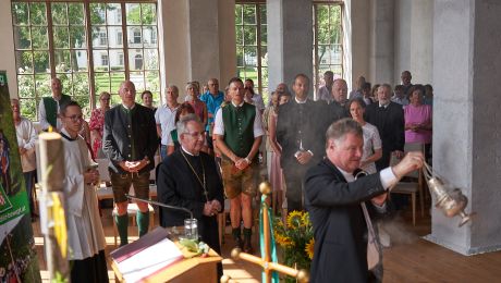 Bischof Manfred Scheuer und Abt Ambros segneten am 25. August 2023 beim Festakt im Feigenhaus den Benedikt-Pilgerweg OÖ.