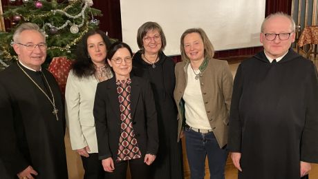 Abt Ambros und Prior P. Maximilian dankten bei der Weihnachtsfeier den Stiftsmitarbeiterinnen, die ein Dienstjubiläum feierten oder pensioniert wurden.