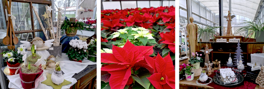 | | | Weihnachtssterne & Co | Dekoratives für die Advent- und Weihnachtszeit | Selbstgebundene weihnachtliche Gestecke, Schneerosen, Weihnachtssterne in leuchtendem Rot oder anderen Farben bereiten wohlige Stimmung. In der Stiftgärtnerei gibt auch viele Deko-Ideen und alles, was man zum selber Machen für Gestecke oder für den Christbaumschmuck braucht. Der Christbaumverkauf startet am 9. Dezember. Unsere Christbäume stammen aus den Kulturen unterhalb der Stiftsgärtnerei. In der Stiftsgärtnerei erhalten Sie viele regionale Lebensmittel. Zuckerhutsalat ist aus der eigenen Produktion! Karpfen und Fische aus den Stiftsgewässern sind jede Woche am Freitag – solange der Vorrat reicht – erhältlich.
