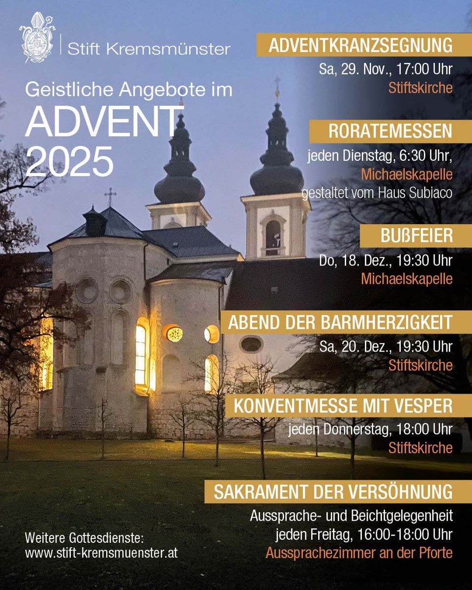 - Herz-Jesu-Messe am ersten Freitag im Monat um 15:30 Uhr in der Kapelle des Bezirksaltenheimes Kremsmünster.
