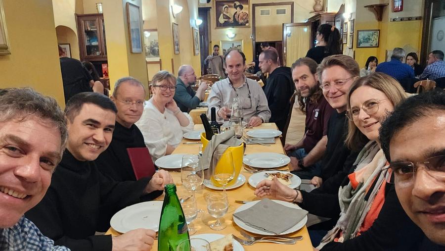 In Rom, wo die Kommission in Sant’Anselmo im Gästehaus untergebracht war, lernten wir den neuen Abtprimas Jeremias Schröder kennen und konnten in einem kurzen Meeting wichtige Ziele unserer Arbeit definieren. Auch der Rektor des Päpstlichen Athenäums Sant’Anselmo, P. Bernhard Eckerstorfer, nahm sich Zeit für die Kommission und gab bei Kaffee und Keksen einen kurzen Überblick über die Benediktinerhochschule sowie einen Einblick in seine Arbeit.