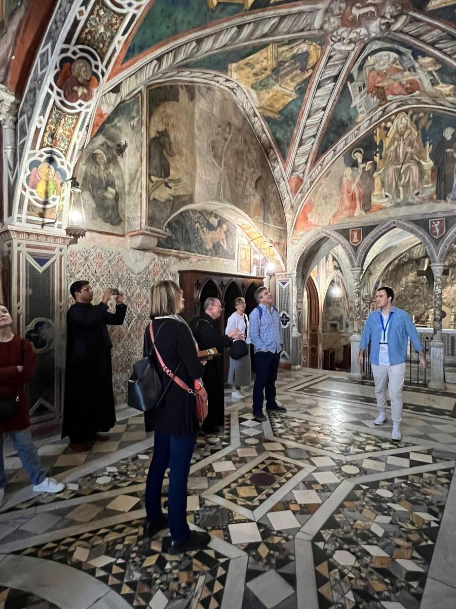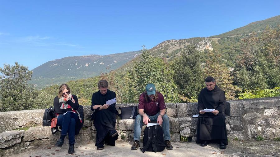 Zum Abschluss begab sich die Kommission am letzten Tag auf die Spuren des Hl. Benedikt. Gemeinsam fuhren wir nach Subiaco, wo wir einerseits die beiden Klöster San Benedetto (Sacro Speco) und Santa Scolastica besichtigten, uns aber auch andererseits genauer mit der Regel des Hl. Benedikt auseinander setzten.