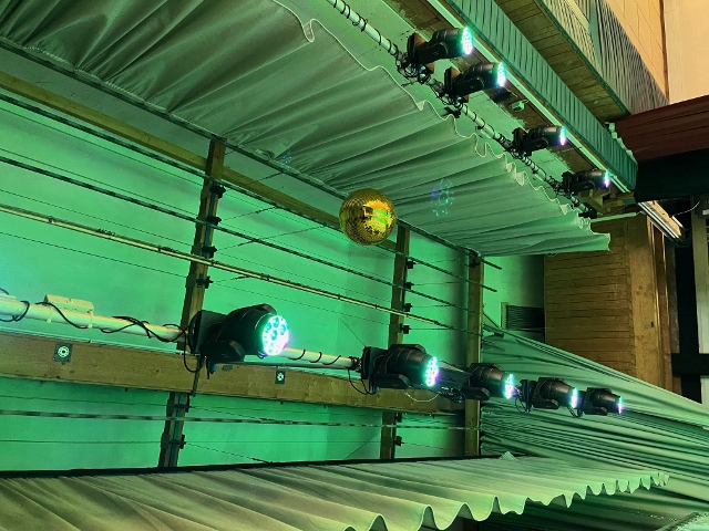 Die Erneuerung der Lichttechnik übernahm Herr Daniel Baron, ein ausgebildeter Lichttechniker. Er installierte 18 neue LED-Moving-Head-Scheinwerfer und richtete die neue Lichtsteuerung ein, die über einen stationären Computer im Technikraum programmiert werden kann. Für einfache Lichtstimmungen gibt es nun ein kleines Bedienfeld mit wenigen Knöpfen, das auch bequem und sicher von Laien benützt werden kann.