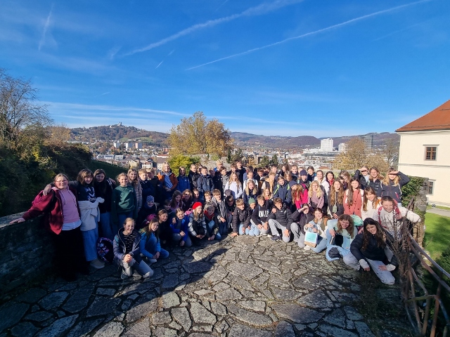 Am Nachmittag stand eine Stadtrallye auf dem Programm. In kleinen Gruppen erkundeten die Schülerinnen und Schüler selbstständig die Innenstadt und beschäftigten sich dabei mit den wichtigsten Sehenswürdigkeiten. Anschließend führte ein gemeinsamer Spaziergang auf den Schlossberg – von dort bot sich ein wunderschöner Blick über die Stadt Linz.