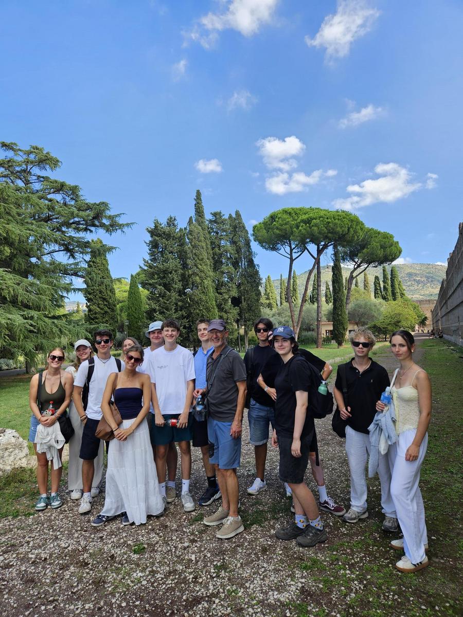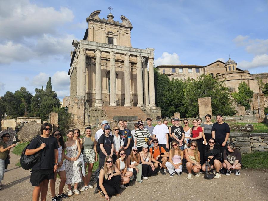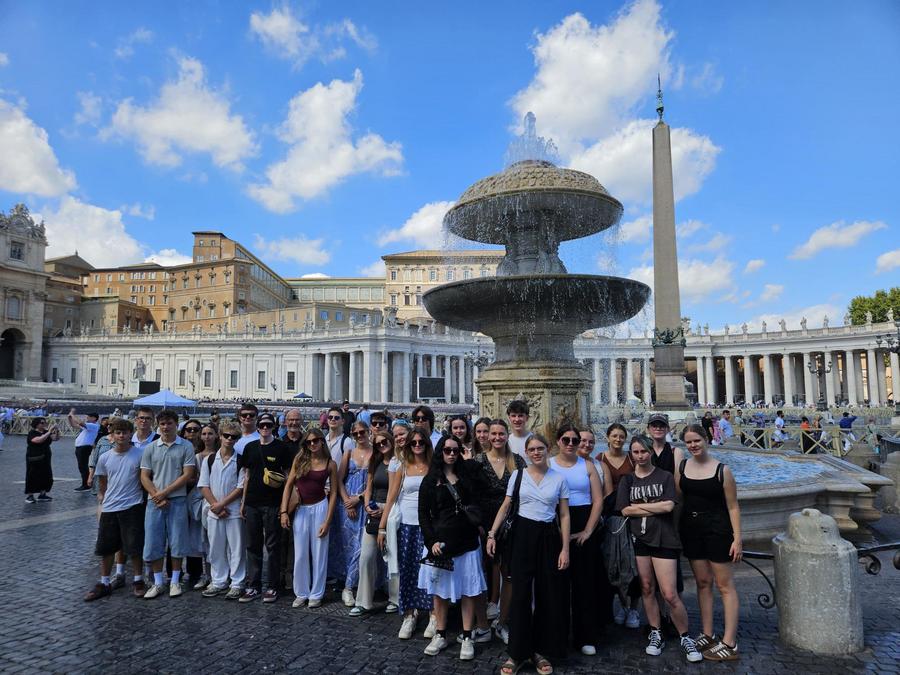 „Omnes viae Romam ducunt.“ („Alle Wege führen nach Rom.“) Auch unser Weg führte uns nun im Rahmen der traditionellen Romreise von 12. bis 19. September 2025 in die Ewige Stadt. In Begleitung unserer Lateinprofessorin und Organisatorin der Reise Barbara Alscher, unseres Religionsprofessors Pater Tassilo Boxleitner und unserer Klassenvorständin Martina Kirchschläger-Mayrhuber nahm die gemeinsame Reise der beiden 8. Klassen am Abend des 12. Septembers ihren Anfang. Mit der Abfahrt des Nachtzuges von Leoben ließen wir das graue, regnerische Österreich zurück. Vor uns lag nicht nur eine abenteuerliche Nachtfahrt in Richtung Rom-Tiburtina, sondern auch das Versprechen auf sonnige Tage im Süden voller gemeinsamer Erlebnisse.