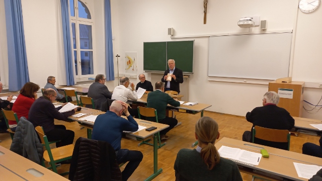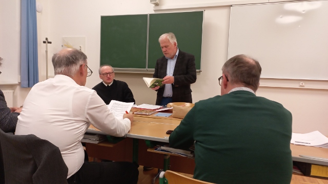Am 21. November hatte der CHC (Circulus humanitatis Cremifanensis) sein 13. Zusammentreffen. Zur Übersetzung und Interpretation nahmen wir uns ausgewählte Texte aus der Regula Benedicti vor. Wolfgang Leberbauer (sprachliche Anmerkungen) und Prior P. Maximilian Bergmayr (die Texte aus benediktinisch-theologischer Sicht) beschäftigten sich gemeinsam mit 20 interessierten Teilnehmerinnen und Teilnehmern – junge Leute und auch ältere Semester – mit Gedanken des Patrons Europas und Ordensvaters der Benediktiner.