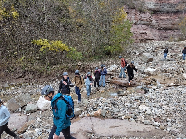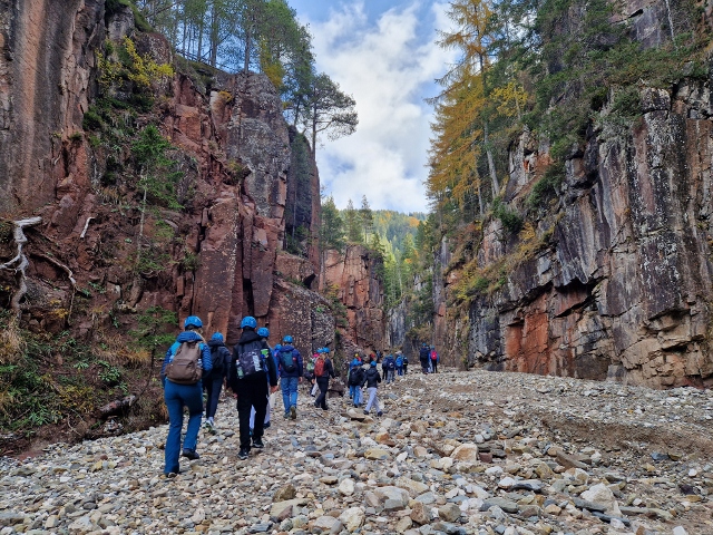 Sportlich wurde es bei der Wanderung zur Burg Hocheppan, und kulturell interessant in Bozen, wo der „Mann im Eis“ im Ötzi-Museum bestaunt und die Altstadt mit einer Schnitzeljagd erkundet wurde. Per Seilbahn und Schmalspurbahn gelangten wir auf den Ritten. Dort boten sich uns spektakuläre Ausblicke auf die faszinierenden Erdpyramiden und das herbstliche Südtirol mit seinen Wein- und Obstgärten. Bei den weiteren Stadtbesuchen in Trient und Brixen wurden die Einflüsse des alpinen Nordens und des mediterranen Südens in unterschiedlicher Ausprägung gut sichtbar. Ein weiteres Naturhighlight war die geführte Tour im Geoparc Bletterbach-Schlucht, in der mehrere Erdzeitalter im wahrsten Sinne des Wortes „durchwandert“ wurden.