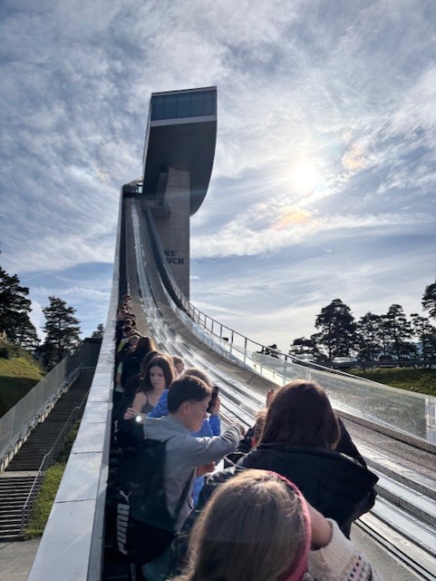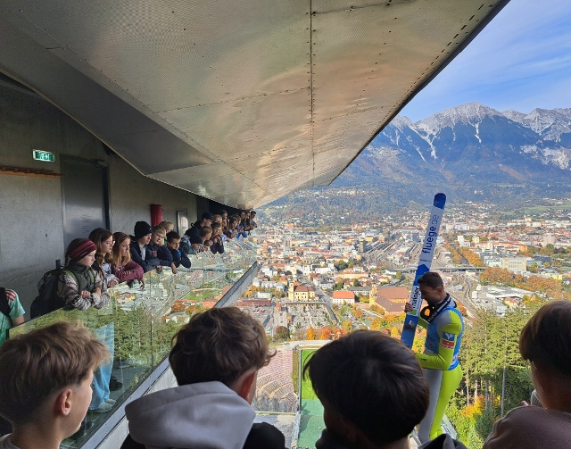 Gleich zu Beginn beeindruckte die Bergisel-Schanze in Innsbruck. Mit dem Skispringer Martin kletterten wir zum Schanzentisch und bis oben zur Startluke, von wo aus sein Kollege Thomas drei Mal in die Tiefe sprang. Im nahegelegenen Panorama-Museum bestaunten wir das riesige Gemälde mit den Schlachten um den Bergisel und der Geschichte des Andreas Hofer.