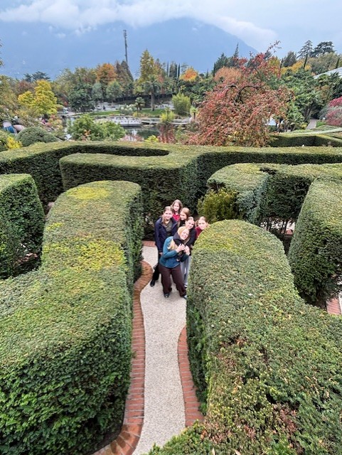 Weiter ging‘s nach Meran. Dort waren wir eine Woche lang in der Jugendherberge untergebracht, genossen nicht nur italienisches Essen und lokale Schmankerl wie Südtiroler Schlutzkrapfen, sondern auch Abendspaziergänge entlang der Passer auf den Spuren von Kaiserin Sisi. Ein besonderes Erlebnis bot der Besuch von Schloss Trauttmansdorff mit seinen farbenprächtigen botanischen Gärten.