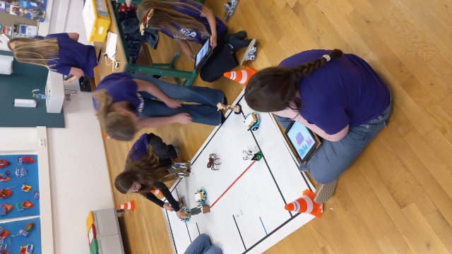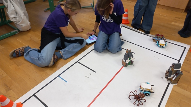 Nach einer Theorieeinheit über Roboter und Grundlagen des Programmierens ging es dann endlich los. Als erstes versuchten die Powergirls einen Harry Potter-Parcours ohne Zusammenstöße zu absolvieren. Dann probierten sie sich im Rückwärtseinparken und Umrunden von vier Verkehrskegeln. Als Letztes mussten Gegenstände mit dem Legoroboter eingesammelt und an eine andere Stelle gebracht werden. In fünf Teams absolvierten die Mädchen der 2A ihre Aufgaben meist fehlerfrei und sammelten so schon die ersten Punkte für den Jahreswettbewerb.