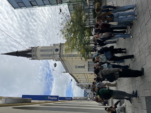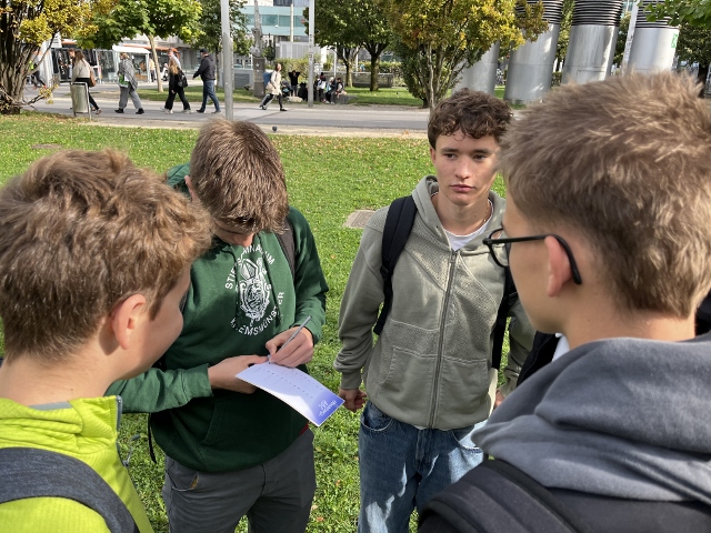Der SpiriTRAIL begann mit der Station AUFBRÜCHE am Vorplatz des Linzer Hauptbahnhofs. Von dort führte uns der Weg durch den Volksgarten bis hinauf zum Schlossberg. An jeder Station – darunter ROLLEN, ENTWICKLUNGEN, BEZIEHUNGEN, SCHWIERIGKEITEN und ZIELE – wurden wir eingeladen, über unsere persönliche und gemeinsame Reise als Klasse nachzudenken.