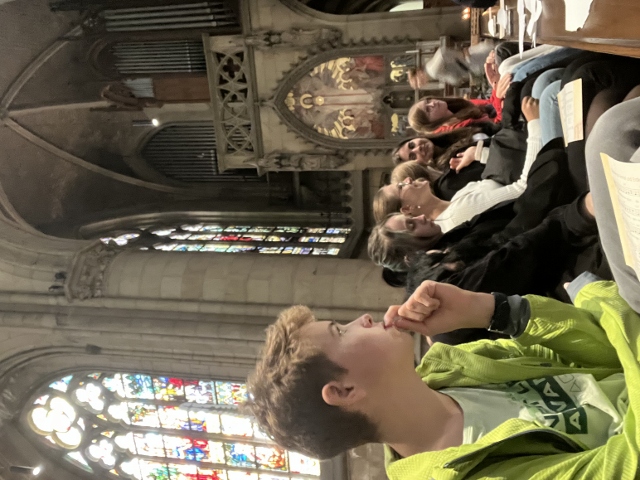 Vor dem Musiktheater reflektierten wir unsere Rollen innerhalb der Klassengemeinschaft. Mithilfe unserer Handykameras gestalteten wir Standbilder, die wir über QR-Codes für eine Präsentation im Mariendom zur Verfügung stellten.