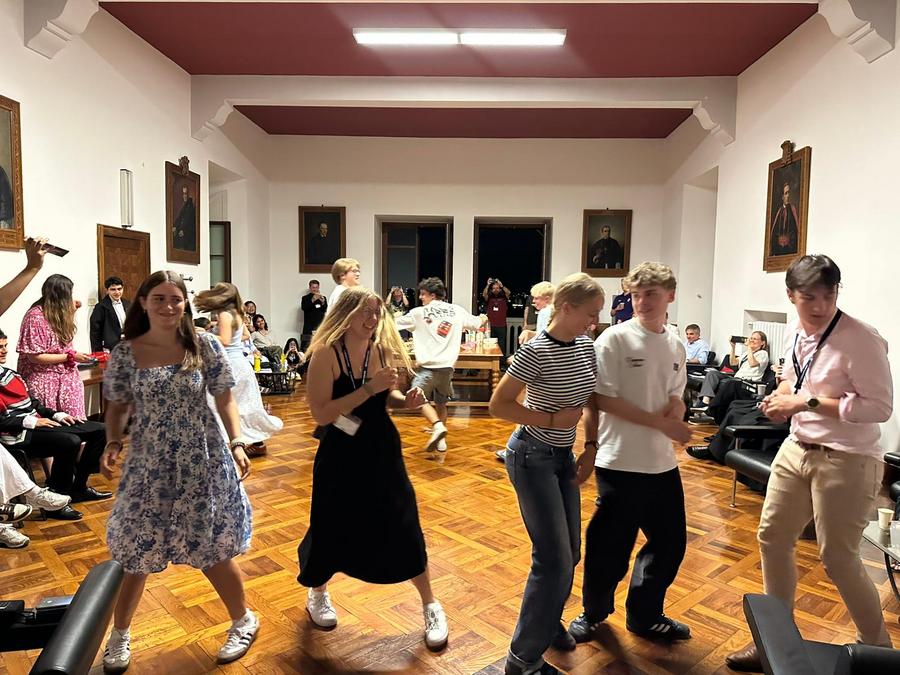 Neben dem dichten Programm gab es dennoch auch reichlich Zeit für Gespräche, Spiele (Werwolf) und Networking, sei es beim Essen im Refektorium oder abends in einem der Aufenthaltsräume. Dabei wurden zahlreiche neue Freundschaften geknüpft und es wurde viel gelacht. Am letzten Abend fand ein bunter Abend statt, bei dem sich alle Länder musikalisch oder mit einem Tanz präsentierten, Österreich stellte sich mit dem Donauwalzer vor und einmal mehr erlebten wir die Vielfalt der unterschiedlichen Teilnehmerländer. Nach dem bunten Abend fiel der Abschied schwer, aber im Wissen, gut vernetzt zu sein und gestärkt vom Geist des heiligen Benedikt machten wir uns dennoch am nächsten Tag wieder auf in unsere Heimat.