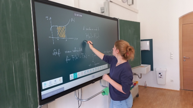Natürlich kann auf den Screens auch der Bildschirm jedes mobilen digitalen Gerätes (Laptop, Handy) kabellos wiedergegeben werden. Davon profitieren sowohl Schülerinnen und Schüler, die ihre Präsentationen bei Referaten direkt vom eigenen Gerät aus steuern können, als auch Lehrkräfte, die auf dem eigenen Gerät vorbereitete, digitale Inhalte oder auch Apps in den Unterricht integrieren möchten, um ihn abwechslungsreich, zeitgemäß und interessant zu gestalten und Lernprozesse bestmöglich zu unterstützen. In einer ersten Einschulung haben sich bereits viele Kolleginnen und Kollegen mit den beeindruckenden Anwendungsmöglichkeiten vertraut gemacht. Weitere Fortbildungsangebote werden folgen.