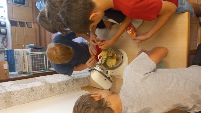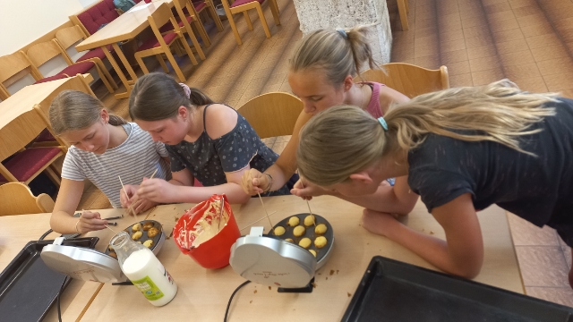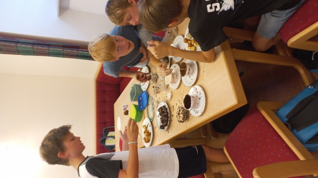 Zuerst berechneten die Jugendlichen die benötigten Mengen der Zutaten aufgrund der Angaben, wie viele Cakepops jede bzw. jeder gerne machen wollte. Dann gingen alle gemeinsam einkaufen, um die benötigten Backzutaten zu besorgen. Aufgeteilt in drei Gruppen wurden dann nacheinander die verschiedenen Teige hergestellt und mit den Cakepop-Makern die Cakepops gebacken. Nach dem Auskühlen der Cakepops begannen alle diese zu dekorieren. Helle und dunkle Glasuren sowie Streusel und Perlen in den verschiedensten Varianten zierten am Ende die Cakepops der Kinder, die entweder gleich vernascht oder aber für die Eltern bzw. Großeltern zum Probieren mit nach Hause genommen wurden.
