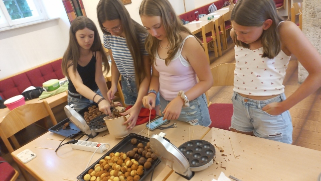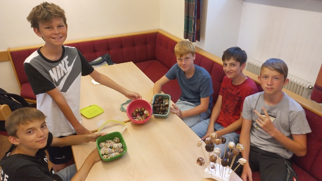 13 Burschen und Mädchen haben sich den Projekttag selbst versüßt, indem sie in der Pfarrheimküche drei verschiedene Sorten Cakepops gebacken und dekoriert haben.