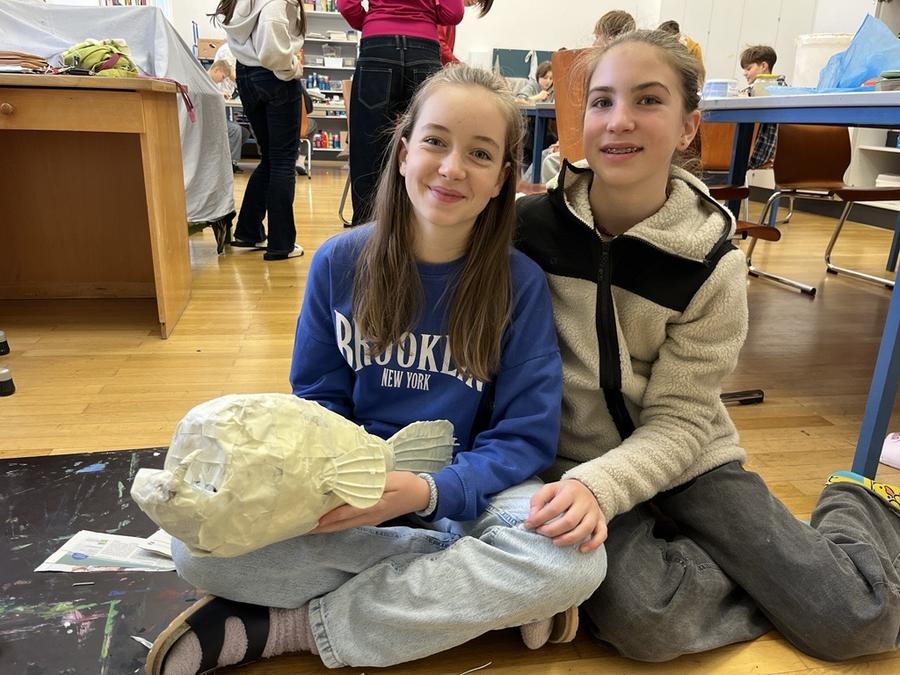 Emma und Johanna (beide 4B) mit ihrem Anglerfisch