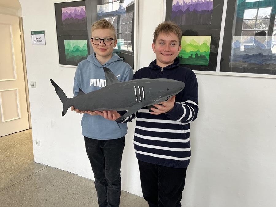 Jakob und Jonas (beide 4D) mit ihrem Hai